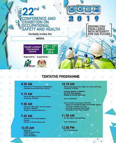 MAJLIS PERASMIAN PERSIDANGAN DAN PAMERAN KESELAMATAN DAN KESIHATAN PEKERJAAN KALI KE-22 (COSH 2019)