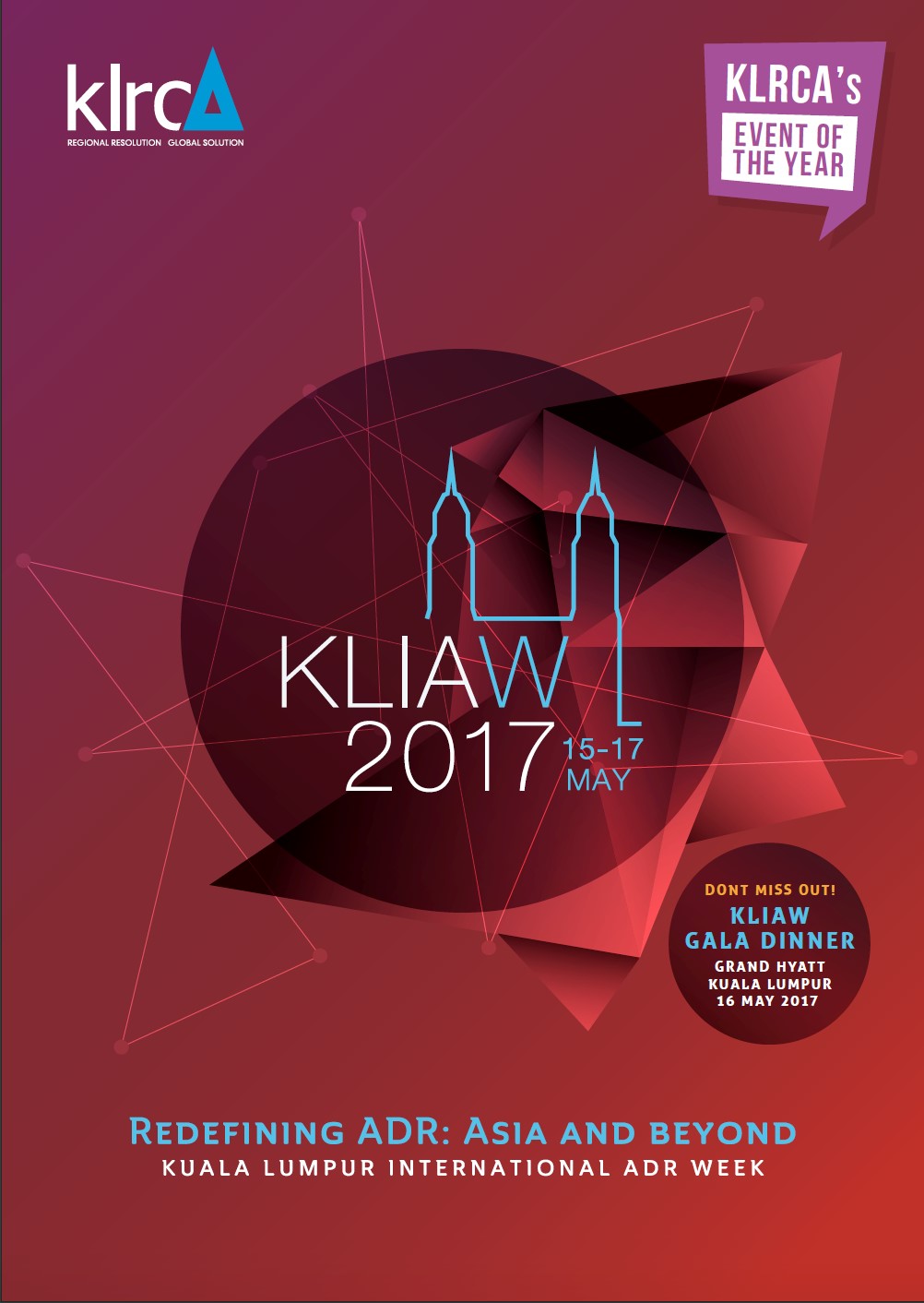 The Kuala Lumpur International ADR Week (KLIAW) 2017 will take place from 15 – 17 May 2017. Spanned across 3 days, the event will feature 65 local and international speakers from leading Alternative Dispute Resolution (ADR) practices. These practitioners will be addressing crucial ADR-related topics over 19 sessions throughout the event.