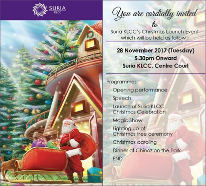 Members of the media are invited to attend Suria KLCC's Christmas launch event which will be held as follows: