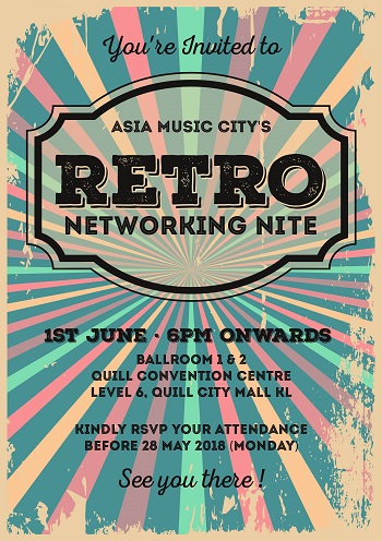 Asia Music City is organising a Retro Networking Nite event, a networking night with business counterparts, event partners, artistes and many more to establish relationship with like-minded people and to showcase/explore what we can do with this brilliant space.