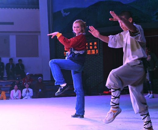 A competitor learned Kungfu from Shaolin monks in the Martial Arts Hall of Shaolin Temple. |