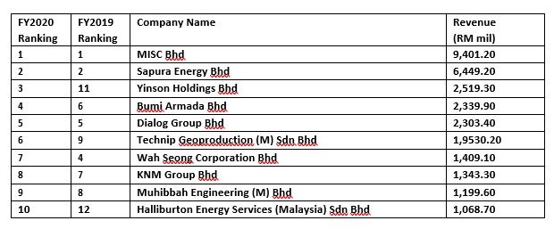 th spot in FY2019. In the fourth and fifth place are Bumi Armada Bhd and Dialog Group Bhd, respectively. (See table below)