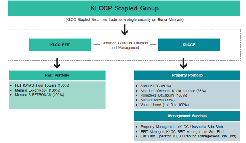 Two of KLCCP’s wholly owned subsidiaries, namely KLCC Urusharta Sdn Bhd and KLCC Parking Management Sdn Bhd, are engaged in providing facility management services and car parking management services respectively. The REIT Manager who is engaged to manage and administer KLCC REIT is internal and resides within KLCCP as a 100% owned subsidiary.