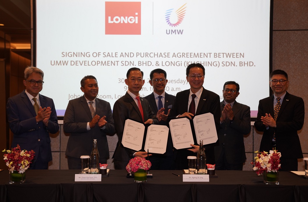 The SPA was signed by Eric Chew Kar Kean, Group Director, UMW Development Sdn. Bhd. and Ngieng Sii Jing, Chief Executive Officer, LONGI (Kuching) Sdn. Bhd., and was witnessed by Dato’ Ahmad Fuaad Kenali, President & Group Chief Executive Officer, UMW Holdings Berhad and Ng Yong Khoi, Planning & Operation Director, LONGI. Also present at the signing ceremony were Sikh Shamsul Ibrahim, Executive Director, Investment Promotion, Malaysian Investment Development Authority (“MIDA”), Dato’ Hasan Azhari Idris, Chief Executive Officer, Invest Selangor and Mohd Hasry Nor Mohd, President, Hulu Selangor Municipal Council.