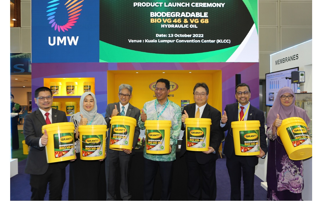 KUALA LUMPUR, Oct 14 (Bernama) -- UMW GRANTT International Sdn. Bhd., a wholly owned subsidiary of the UMW Group, and the producer of GRANTT lubricants, today introduced its maiden range of bio hydraulic lubricants, its inaugural foray into the green product line-up. The GRANTT Bio VG Hydraulic Oil was launched by Dato’ Seri Ir. Dr. Zaini Ujang, Secretary General, Ministry of Environment and Water at the International Greentech & Eco Products Exhibition & Conference Malaysia (“IGEM”) 2022, Southeast Asia’s largest trade event for green technologies and eco solutions, at Kuala Lumpur Convention Centre.