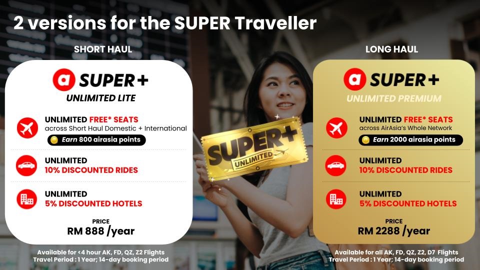 Over 30,000 seats have been redeemed within the last four days since its launch, and more seats to over 130 destinations across Asean and beyond are available to be redeemed for free to SUPER+ Unlimited subscribers in the next one year. Aside from that, they can enjoy unlimited 10% off for airasia ride and unlimited 5% discount on all hotels on the airasia Super App. Subscribers also earn 800 airasia points for the Lite option, and 2,000 airasia points for the Premium option.