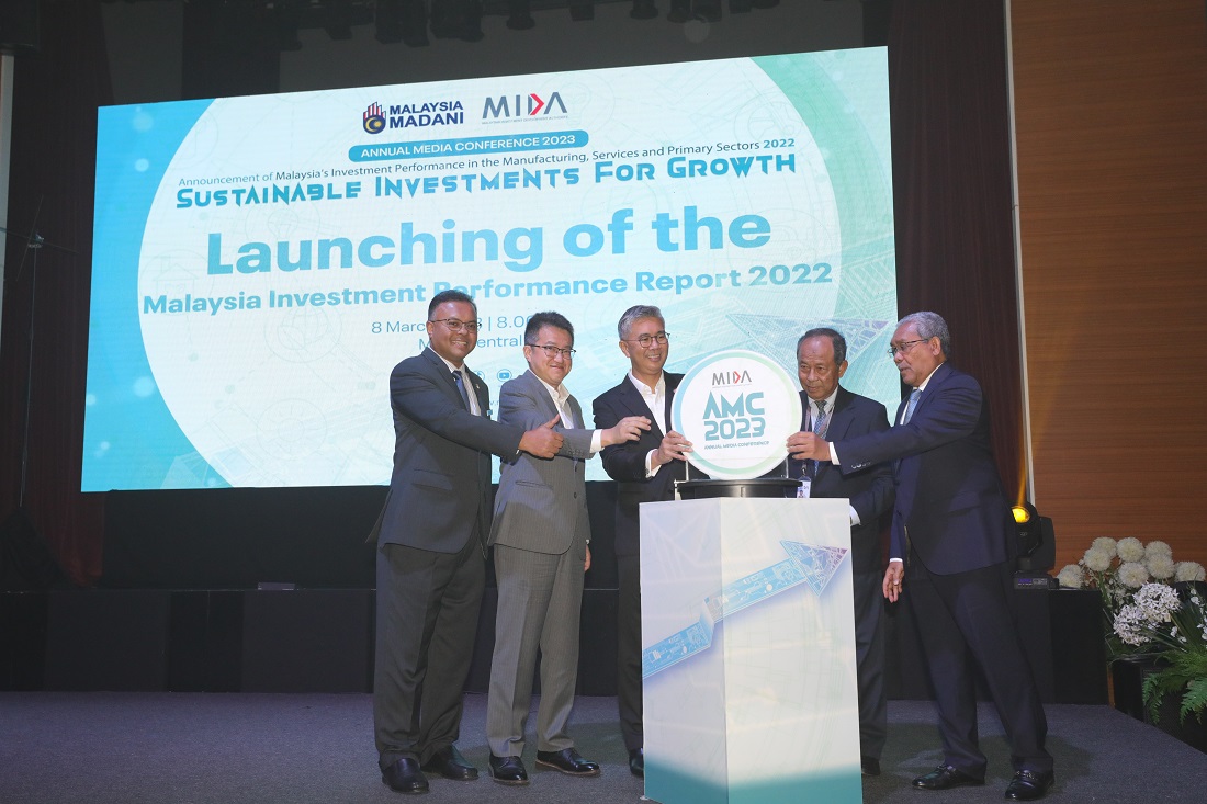From Left - YBhg Datuk Seri Isham Ishak, Secretary General of MITI; YB Liew Chin Tong; Deputy Minister of MITI; YB Senator Tengku Datuk Seri Utama Zafrul Bin Tengku Abdul Aziz, Minister of MITI; YBhg. Tan Sri Dato' Seri Dr. Sulaiman Mahbob, Chairman of MIDA; and YBhg. Datuk Wira Arham Abdul Rahman, CEO of MIDA at the Launching of The Malaysian Investment Performance Report 2022• The Malaysia Madani concept emphasises the concepts of innovation, inclusivity and sustainability, where economic growth is achieved in a balanced and equitable manner, taking into account environmental, social and governance (ESG) factors. In this context, the positive trend in approved investments across Malaysia's services, manufacturing, and primary sectors is a promising sign for the country's focus towards achieving a more sustainable economy.