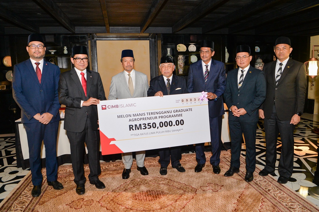 Photo caption: At the ceremony to formalise the agreement were (L-R) Nazzi Beck, Regional Head, Strategic Initiatives of CIMB Islamic; Ahmad Shahriman Mohd Shariff, CEO of CIMB Islamic; KDYMM Sultan Terengganu, Al-Wathiqu Billah Sultan Mizan Zainal Abidin ibni Almarhum Sultan Mahmud Al-Muktafi Billah Shah; Dato’ Haji Mohd Fadzli Yusof, Board of Trustee member, Yayasan DiRaja Sultan Mizan; Dato’ Haji Azizulrahim Ahmad Zambri, Board of Trustee member, Yayasan DiRaja Sultan Mizan; Professor Dr. Fadzli Adam, Vice Chancellor of Universiti Sultan Zainal Abidin and Professor Ts. Dr. Shukor Abd Razak, Deputy Vice Chancellor (Research and Innovation) of Universiti Sultan Zainal Abidin.Seed funding of RM350,000 will be channelled towards training and development of university graduates under The Melon Manis Terengganu Graduate Agropreneur Programme KUALA LUMPUR, March 16 (Bernama) -- CIMB Islamic Bank Berhad (“CIMB Islamic”) today announced that it has signed a tripartite agreement with Yayasan DiRaja Sultan Mizan (“YDSM”) and Universiti Sultan Zainal Abidin (“UniSZA”) for the Melon Manis Terengganu (“MMT”) Graduate Agropreneur Programme. The programme will provide comprehensive training and development for university graduates to tap into agriculture-based careers and opportunities.