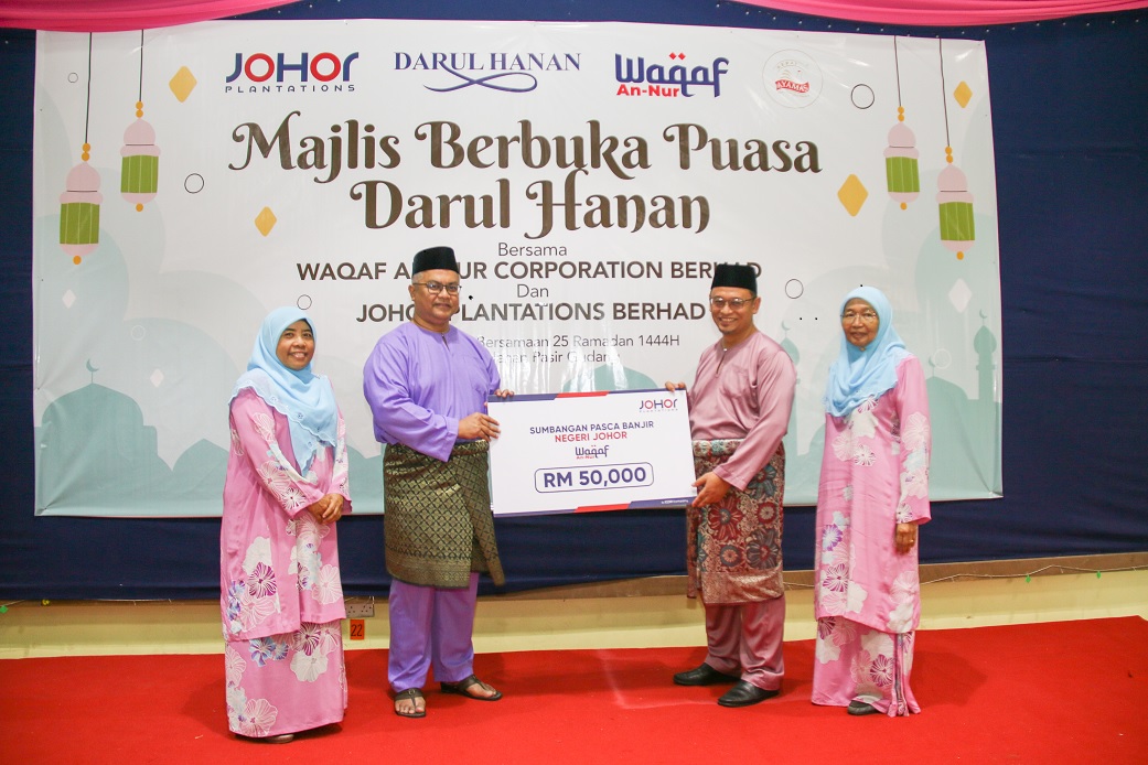 The contribution was made during an iftar hosted by Johor Plantations at the Persatuan Kebajikan Darul Hanan (Darul Hanan) in Pasir Gudang which cares for orphans and the less fortunate. In the spirit of giving and bringing Ramadan cheers, Johor Plantations donated RM5,000 to fund some of the orphanage’s activities and gave out