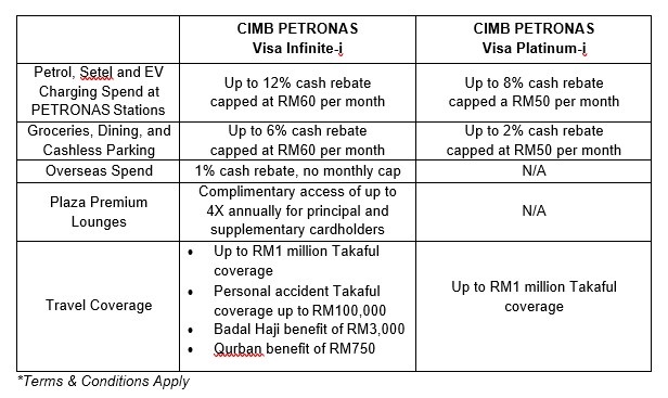 Effendy Shahul Hamid, Chief Executive Officer, Group Consumer and Digital Banking of CIMB Group said, “We are delighted to expand on our collaboration with PETRONAS, now in its 15th year, by introducing the CIMB PETRONAS Visa Islamic Credit Cards, including the first Visa Infinite petrol card in the market. This offering underscores our commitment to introduce innovative offerings that deliver greater value to our customers, in this case by providing them with attractive rebates on their daily essentials and spending needs.”