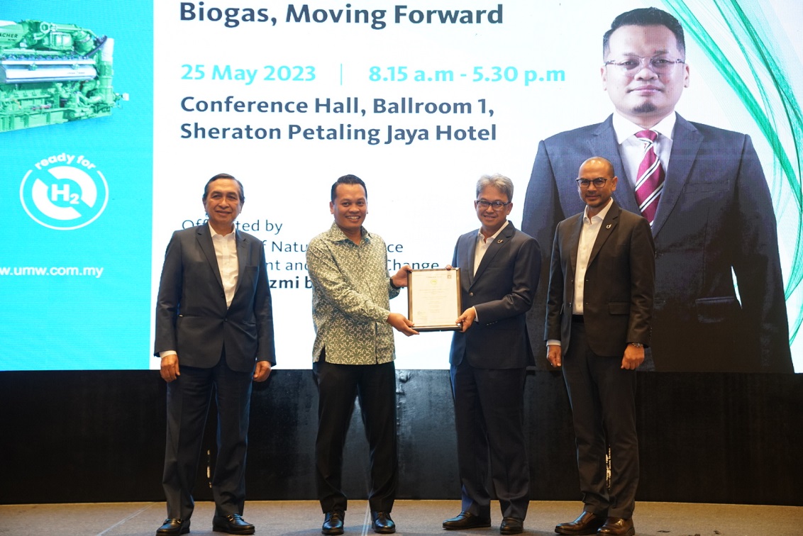 YB Nik Nazmi Nik Ahmad, Minister of Natural Resources, Environment and Climate Change, presented Dato’ Ahmad Fuaad Kenali, President & Group CEO, UMW Holdings Berhad with the MyHijau Mark certificate for the Jenbacher gas engines, witnessed by Tan Sri Dato’ Sri Hamad Kama Piah Che Othman, Group Chairman, UMW Holdings Berhad and Megat Shahrul Azmir, President of Equipment Division, UMW.KUALA LUMPUR, May 25 (Bernama) -- UMW Group’s wholly-owned subsidiary, UMW Industrial Power Services Sdn. Bhd. (“UIPS”) has been appointed as the authorised distributor of INNIO’s Jenbacher engines in Malaysia, marking UIPS’ maiden foray into the green and renewable energy sector. The distribution of this product supports UMW’s Sustainability Pillar under CREST@UMW, which is also in line with the 12