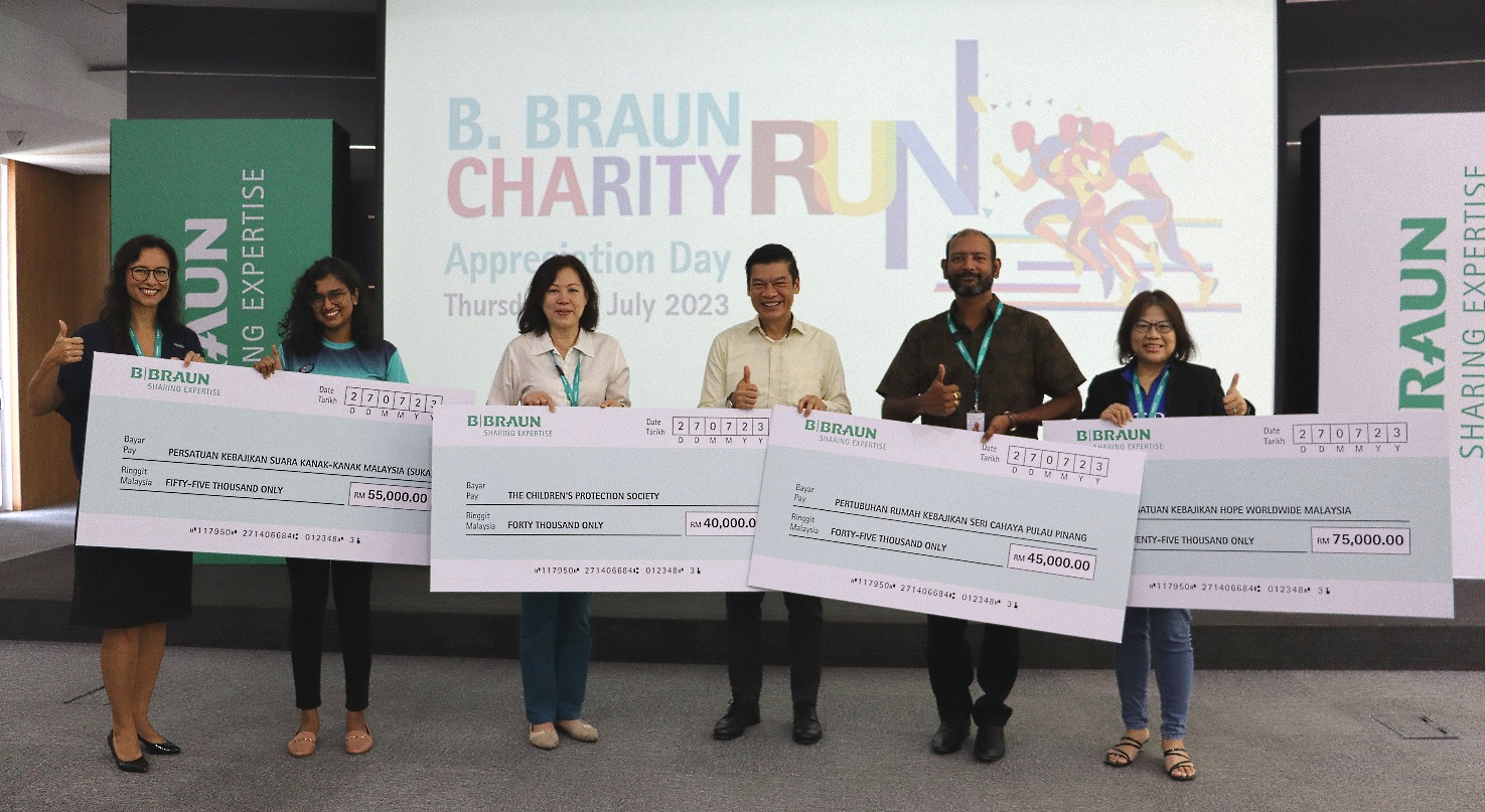 BAYAN LEPAS, Penang, Aug 22 (Bernama) -- B. Braun Medical Industries Sdn. Bhd. (BMI) recently presented a donation totalling RM215,000 to four charity homes – The Children’s Protection Society Penang, Pertubuhan Rumah Kebajikan Seri Cahaya Penang, Persatuan Kebajikan HOPE Worldwide Malaysia, and Persatuan Kebajikan Suara Kanak-Kanak Malaysia (SUKA). The funds were raised through the company’s annual charity run event with its employees, which aims to provide support for disadvantaged children and adolescents, addressing their specific needs, ranging from healthcare, education and social well-being. Mr. Lam Chee Hong, President, B. Braun Asia Pacific said, “From the very inception of this charity run, our goal was clear: to make a tangible difference in the lives of underprivileged children – to offer them hope and to provide them with the opportunities they might not receive otherwise. Children are the foundation of our future, and every child deserves a safe, healthy, and happy life. We believe that by investing in their well-being today, we are nurturing the potential leaders and contributors of tomorrow.” Mr. Lam presented the mock cheques to this year’s charity recipients during an appreciation ceremony held at the company’s premises in Bayan Lepas. On hand to receive the mock cheques from Mr. Lam were Ms. Magdeline Leong, Honorary Secretary of The Children’s Protection Society; Ms. June Kow, Senior Programme Manager of Persatuan Kebajikan HOPE Worldwide Malaysia; Mr. Girithren A/L Veerasingam, President of Pertubuhan Rumah Kebajikan Seri Cahaya Penang; and Ms. Sonia Ann Thomas, Executive, Persatuan Kebajikan Suara Kanak-Kanak Malaysia (SUKA). Also present were Ms. Eva Maegerlein, Senior Vice President, Finance, Controlling and IT, B. Braun Asia Pacific; Ms. P’ng Yi Ting, Resource Coordinator, Persatuan Kebajikan Suara Kanak-Kanak Malaysia (SUKA); and Ms. Bunidha A/P Chandrakesan, Caretaker, Pertubuhan Rumah Kebajikan Seri Cahaya Penang, as well as winners of the B. Braun Charity Run 2023. “As one of the world’s leading medical technology companies, B. Braun is committed to protecting and improving the health of people around the world. We are pleased our employees are able to come together as one B. Braun family and help make a difference for these children,” Mr. Lam added.