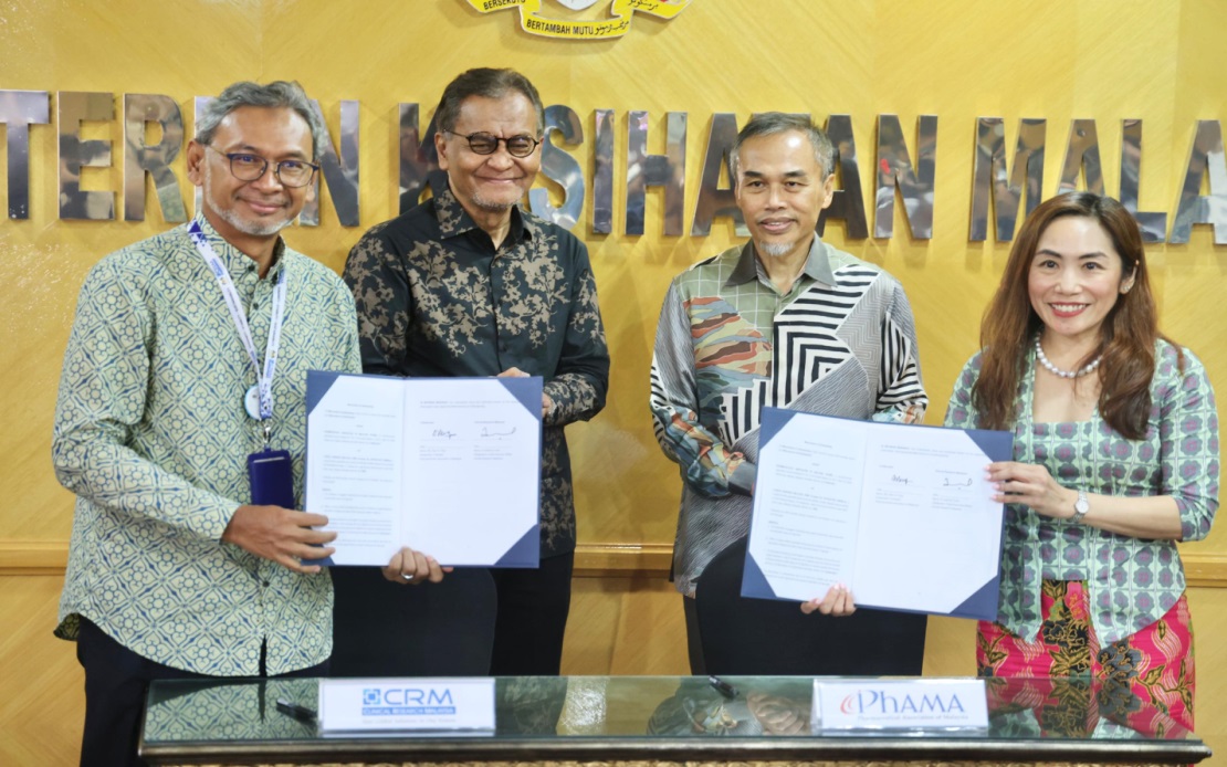 The MOU was signed by Dr Akhmal Yusof, Chief Executive Officer of CRM, and Ms Kam Ai Teng, President of PhAMA and was witnessed by the Minister of Health, Datuk Seri Dr Dzulkefly Ahmad. Under the MoU, PhAMA will support CRM through the provision of proteges on an annual basis for the next three years, effective this year.