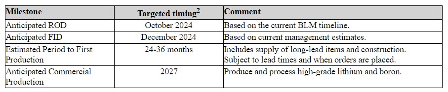 Estimated Project TimelineIoneer’s estimated timing for the Rhyolite Ridge Lithium-Boron Project is as follows: