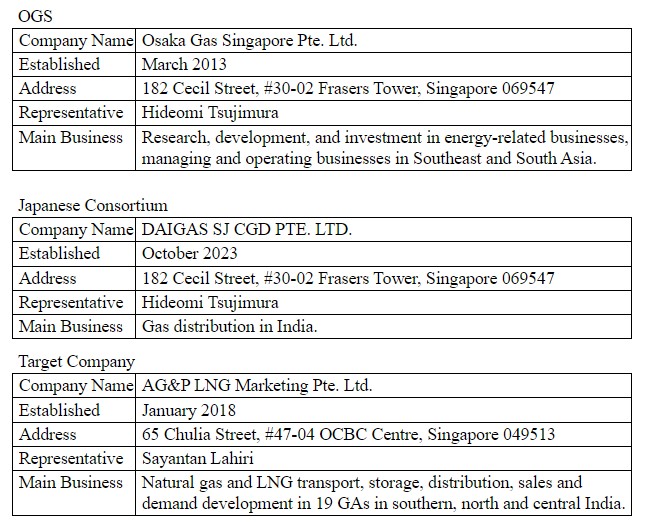 · Osaka Gas has held equity in the target company through AG&P SPV3 since 2021, when Osaka Gas invested in AG&P SPV3 through OGS in 2021, alongside JOIN.