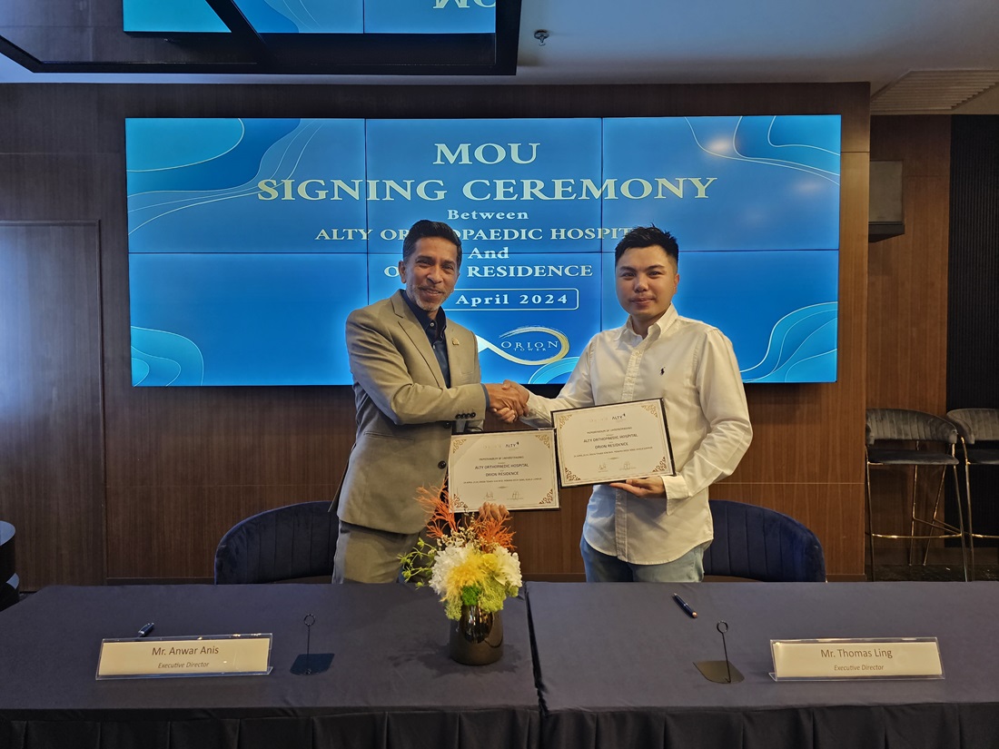 Mr Anwar Anis, Executive Director of ALTY Orthopaedic Hospital and Mr Thomas Ling, Executive Director Of Orion Tower Sdn Bhd sign the MoU to commence the partnership.KUALA LUMPUR, April 30 (Bernama) -- ALTY Orthopaedic Hospital (ALTY), one of Malaysia’s first single-specialty comprehensive orthopedic hospitals, has signed a Memorandum of Understanding (MoU) with luxury property developer, Orion Tower Sdn Bhd to offer exclusive orthopaedic healthcare services to its residents at the Orion Residence KL.