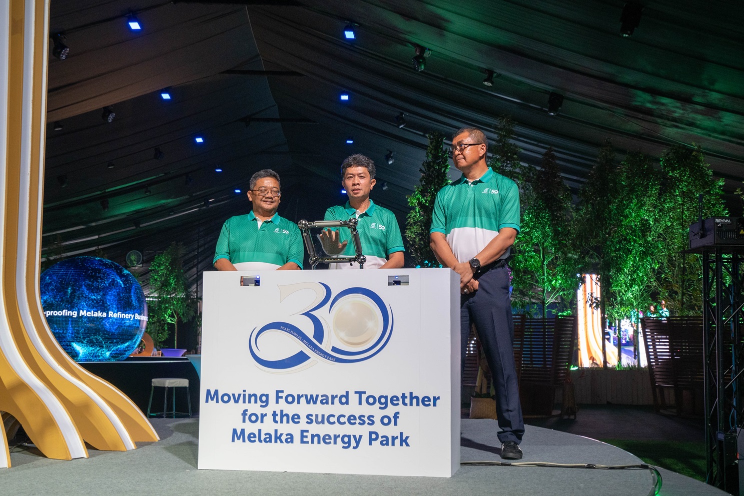 Ahmad Adly Alias, Vice President of Refining, Marketing & Trading, Downstream, PETRONAS, and Chairman of MRCSB (center) together with Datuk Sazali Hamzah, Executive Vice President and Chief Executive Officer, Downstream, PETRONAS (left) and Ahmad Farid Yacob MRCSB Managing Director and Chief Executive Officer, Ahmad Farid Yacob (right) during the Melaka Energy Park launch to commemorate the company’s Pearl Jubilee milestone.SUNGAI UDANG, May 2 (Bernama) -- Malaysian Refining Company Sdn Bhd (MRCSB), a subsidiary of PETRONAS and a refining site operator with one of the largest capacities in Malaysia announced the renaming of its Melaka Refinery Complex to Melaka Energy Park to commemorate the company’s Pearl Jubilee milestone.