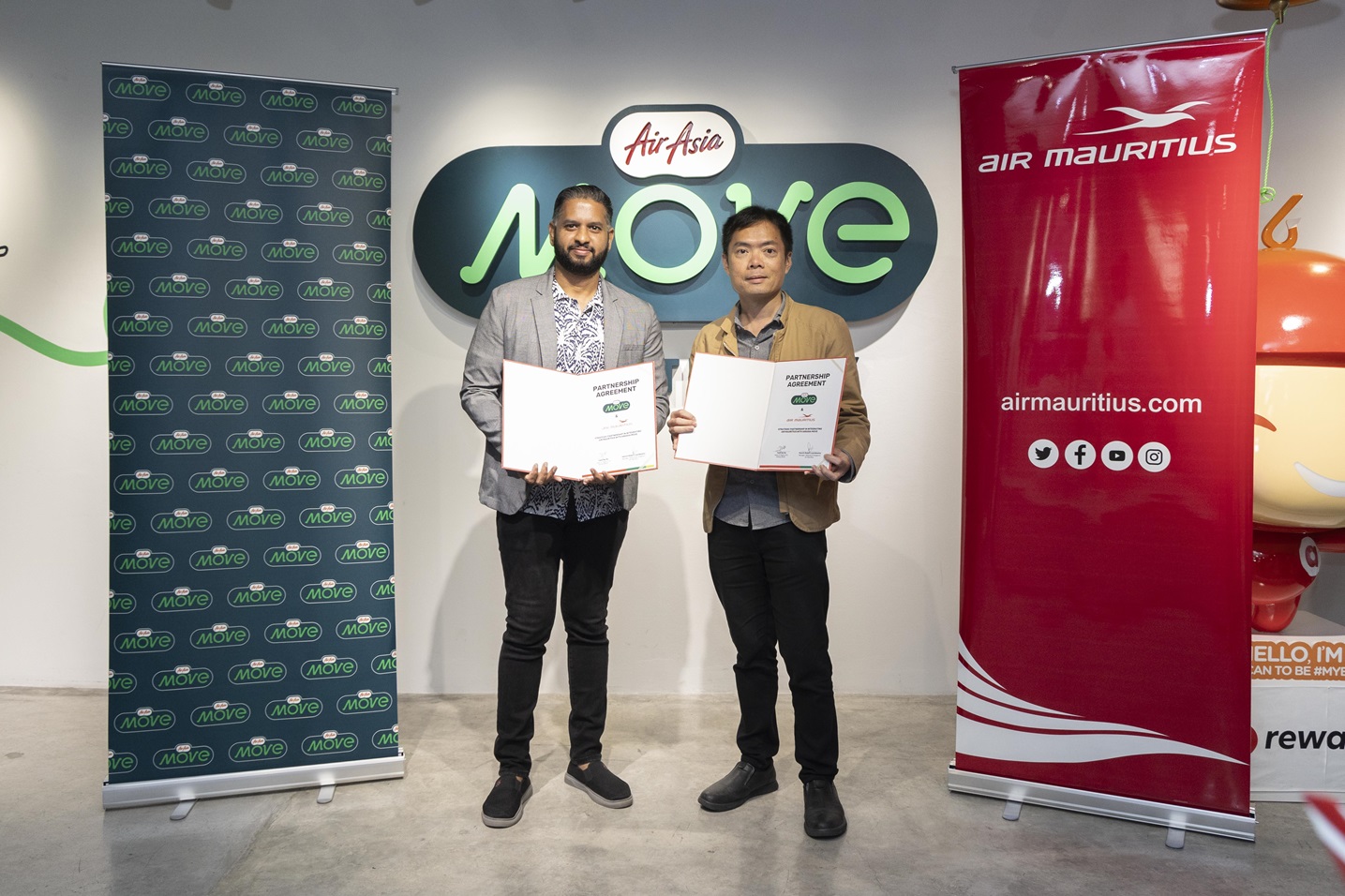 The partnership between AirAsia MOVE and Air Mauritius was formalised at a signing ceremony between Yeoh Sai Ho, Head of Flights OTA at AirAsia MOVE and Heavin Robert Lourdasamy, Manager, Malaysia & Singapore of Air Mauritius at AirAsia MOVE’s headquarters in Kuala Lumpur recently.