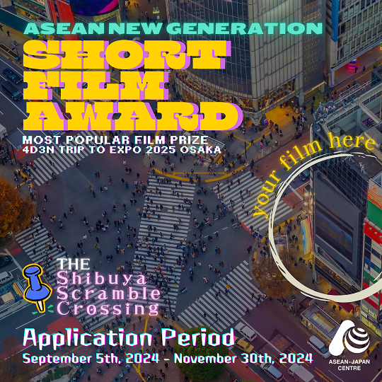 TOKYO, Sept 5 (Bernama-BUSINESS WIRE) -- The ASEAN-Japan Centre (AJC) is launching the "ASEAN NEW GENERATION" Short Film Award, a competition seeking creative short films that showcase the vibrant life and aspirations of ASEAN people. This exciting opportunity invites filmmakers and storytellers from across the 10 ASEAN Member States to share their unique perspectives with a Japanese audience. Ten winners will have a portion of their film featured at the Shibuya Crossing in Tokyo. The winner with the most popular film (decided by public voting) will also win a 4D3N trip for one (ticket & lodging) to Osaka to attend the Expo 2025 Osaka. Submission due date is Nov 30, 2024 (Japan time).