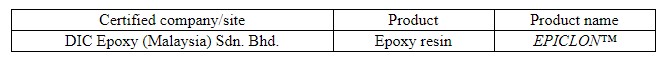 ISCC PLUS,* an international certification scheme for sustainable products, for a product manufactured by subsidiary DIC Epoxy (Malaysia) Sdn. Bhd.