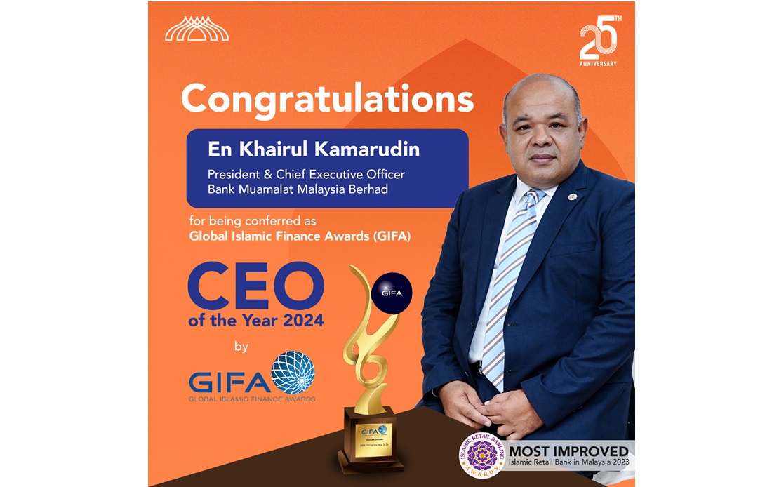 KUALA LUMPUR, Sept 20 (Bernama) -- Bank Muamalat Malaysia Berhad (Bank Muamalat) is proud to announce that its President and Chief Executive Officer, Khairul Kamarudin, has won the prestigious