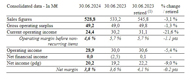 The EBITDA fell by -1.3% to €49.2 million, while operating income recurring by -21.6% to €24.4 million. The net income of the Group came to €20.2 million, giving a net margin of 3.8%.