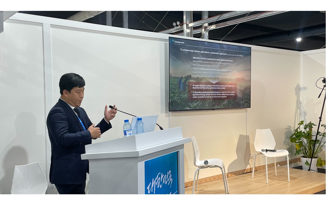 At a talk entitled "Transition to Low-Carbon Agriculture and Animal Husbandry,” Greenery introduced its first case study: a rice paddy drainage system that reduces methane emissions and conserves water. By monitoring water levels and collecting climatic and soil data, the system quantifies and tracks emission reductions. As part of a data flagship program led by South Korea’s Ministry of Science and ICT and the National Information Society Agency (NIA), the project will be launched by the end of the year. The project's use of agricultural data attracted considerable interest, drawing inquiries about partnerships throughout the conference.