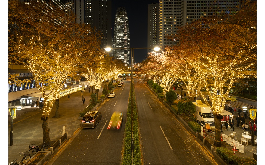 https://www.businesswire.com/news/home/20241203634601/en/ "Nishi-Shinjuku Illumination Market” started on November 28, 2024. On Chuo-dori Avenue along the Tokyo Metropolitan Government Building, approximately 200,000 champagne gold LED lights illuminate the street for as long as 200 meters, creating a fantastic night scene, a new illumination spot in Tokyo.